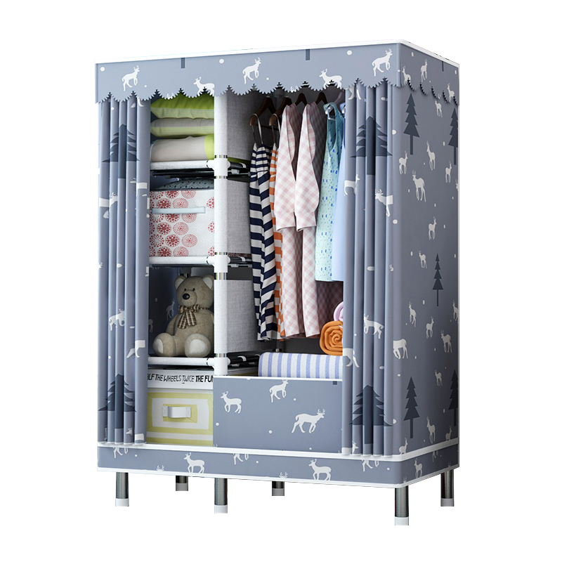 Wardrobe Home Bedroom Simple Cloth Wardrobe Steel Pipe Plus Coarse Reinforcement Double Rental Room With Assembly Cloth Art Hanging Closet