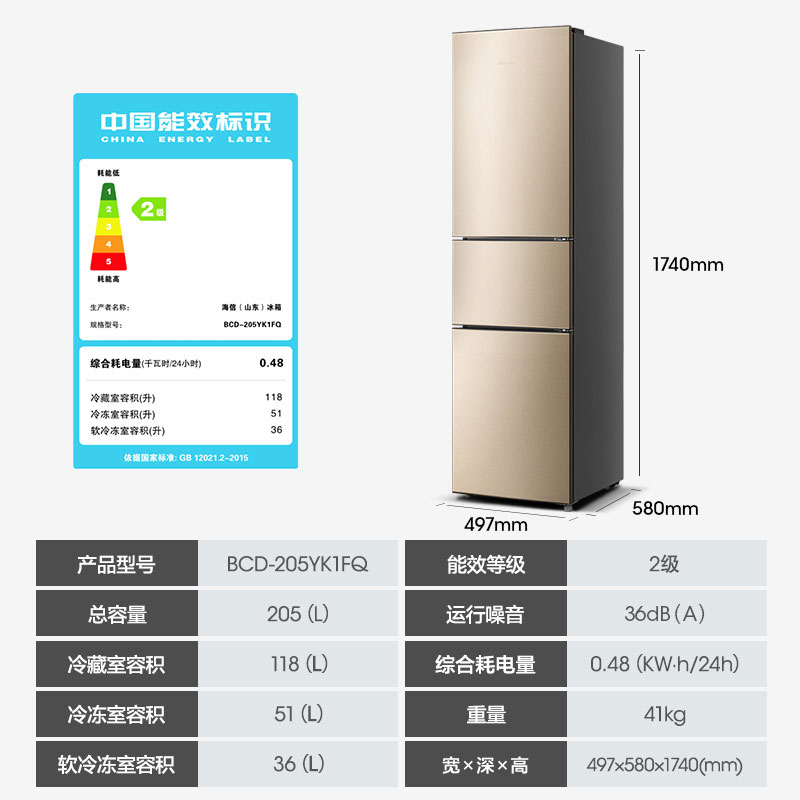 Hisense BCD-205YK1FQ three small household rental refrigerator energy-saving dormitory refrigerator