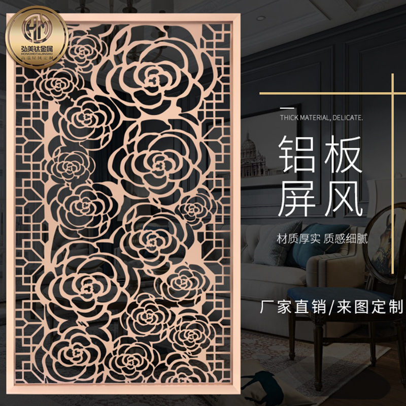 Nordic hotel screen laser skeletonization Sales department background wall partition new Chinese bronze lattice decorative wall