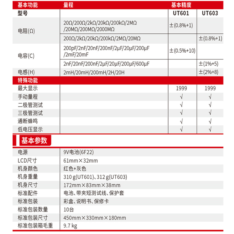 Uliid UT601 capacitive table resistance table UT603 inductively universal electric meter LCR bridge tester
