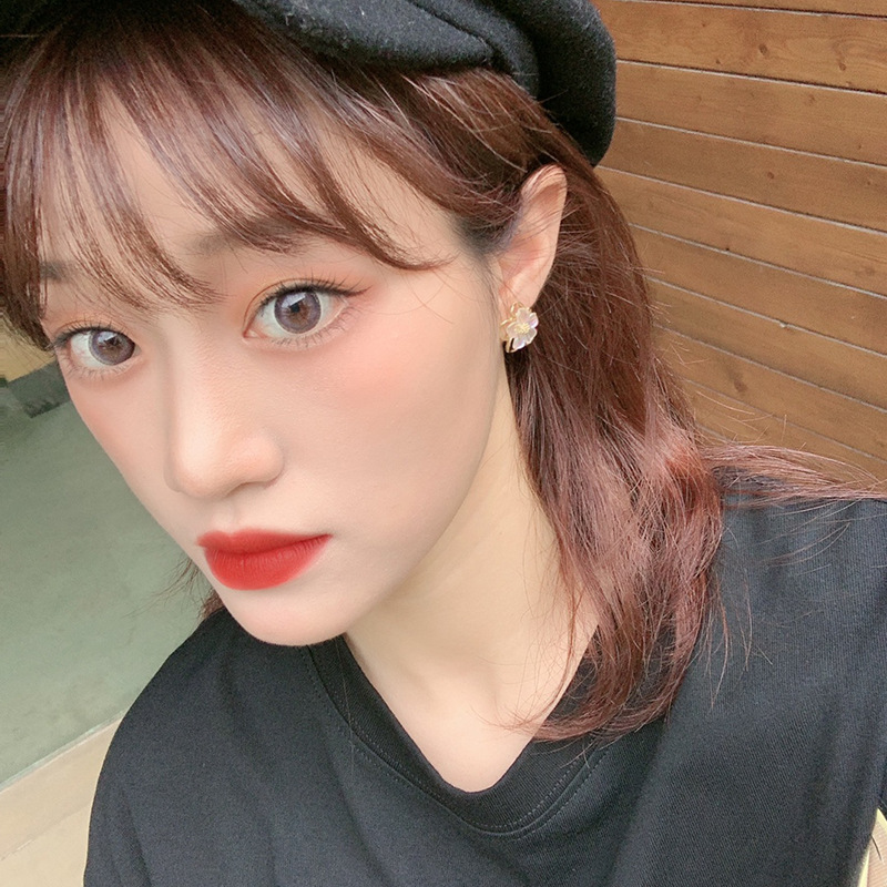 925 Silver Needle Shell Little Flower Nails Little Super Fan Red Earring in Korea Xiaoqing and Hundred Ear