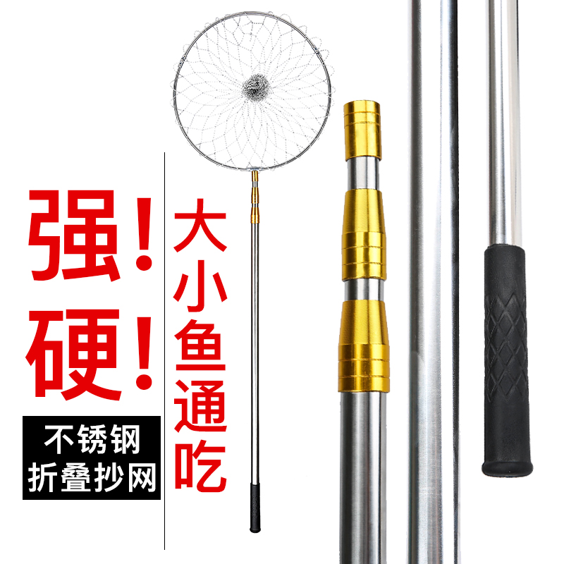 Copy net rod 4 meter telescopic rod fishing net stainless steel copy net fishing net fishing net fishing gear nano anti-hanging net head is ultra-light
