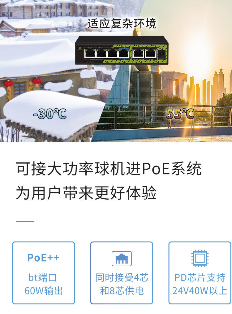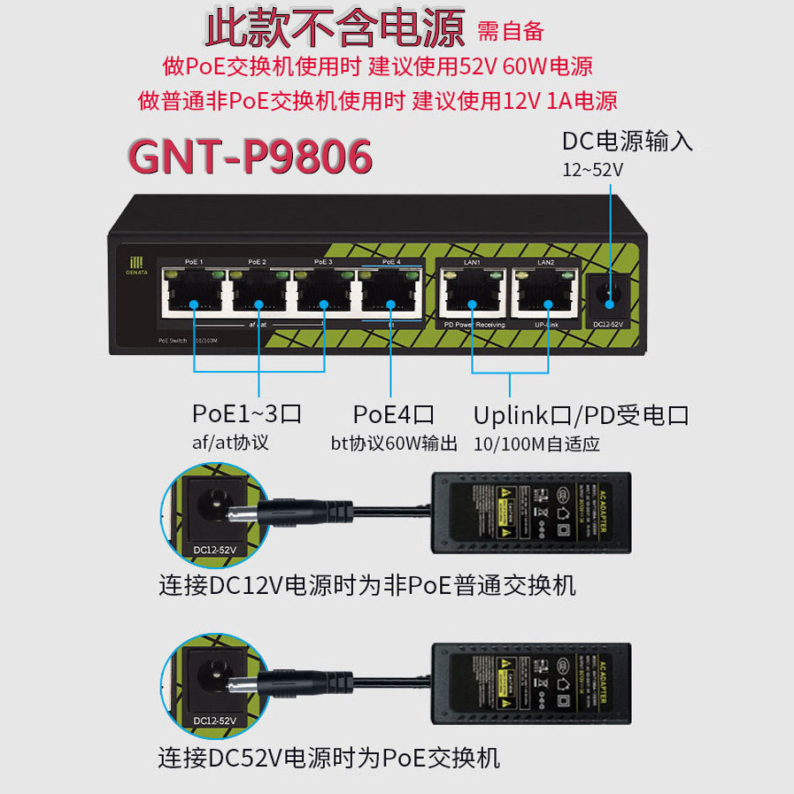 Zhentian PoE switch GNT-P9806V6 standard 6 48V high power BT 60W power cascade 1 point 4