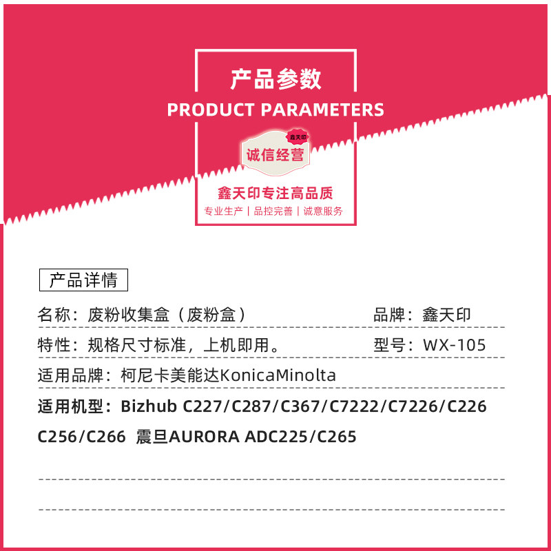 Xin Tianprint Applicable Cornika beauty can C226 C226 C256 C266 photocopier waste toner collection case Seismic Denier ADC225 C265 Carbon Powder Collector Waste Powder Recycling box WX1