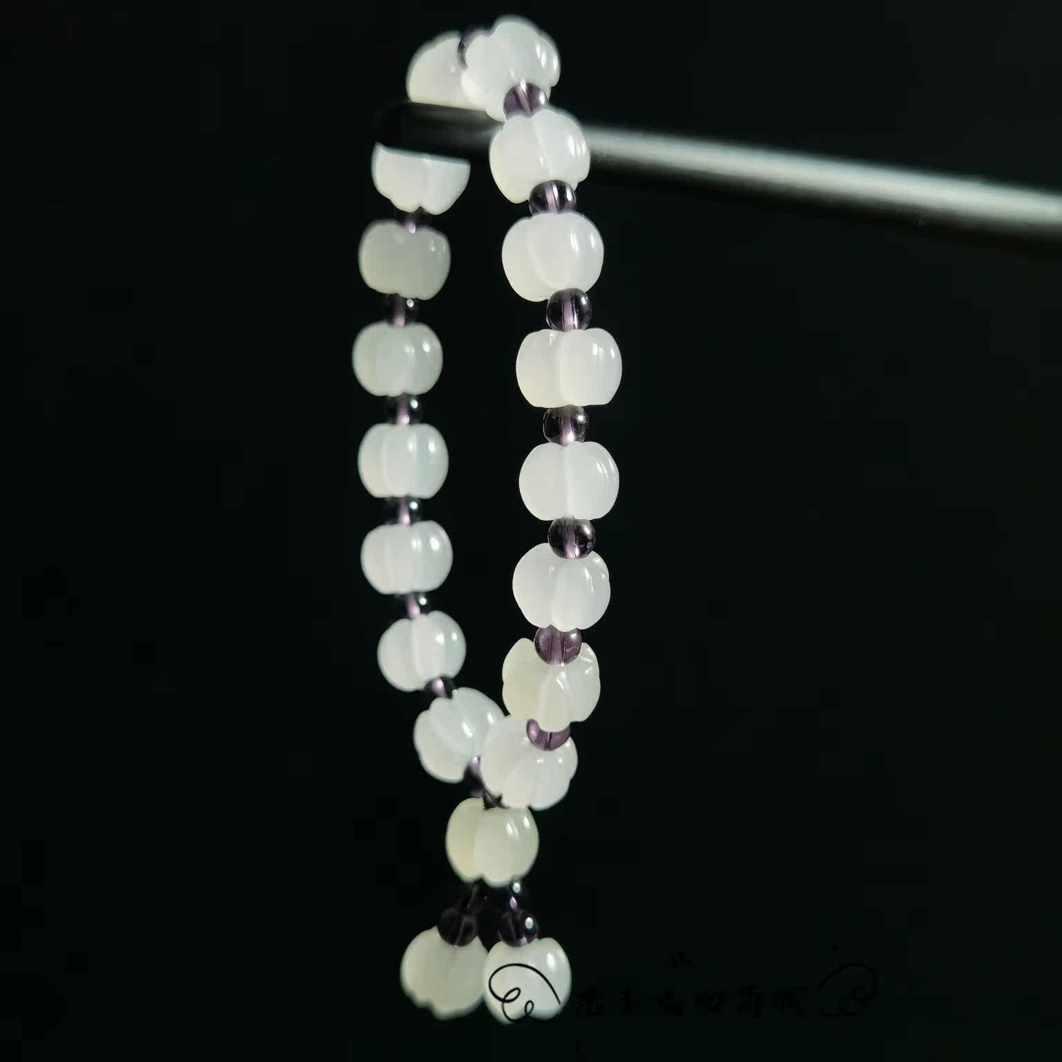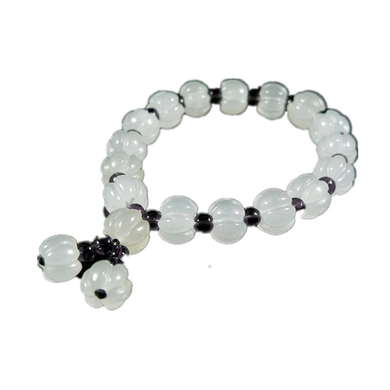Xinjiang Golden Silk White Jade Yellow Pumpkin Pearl Jade Handmade Woman's Fashion 100 Hitch Fresh Art Fan Design Handstring