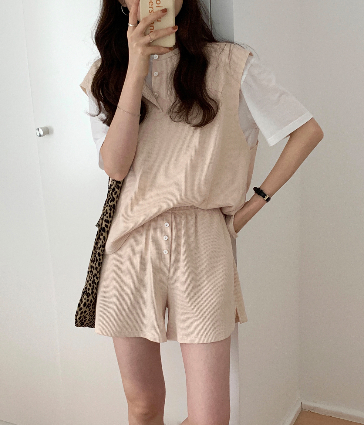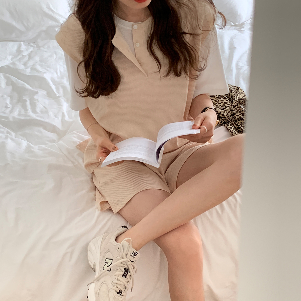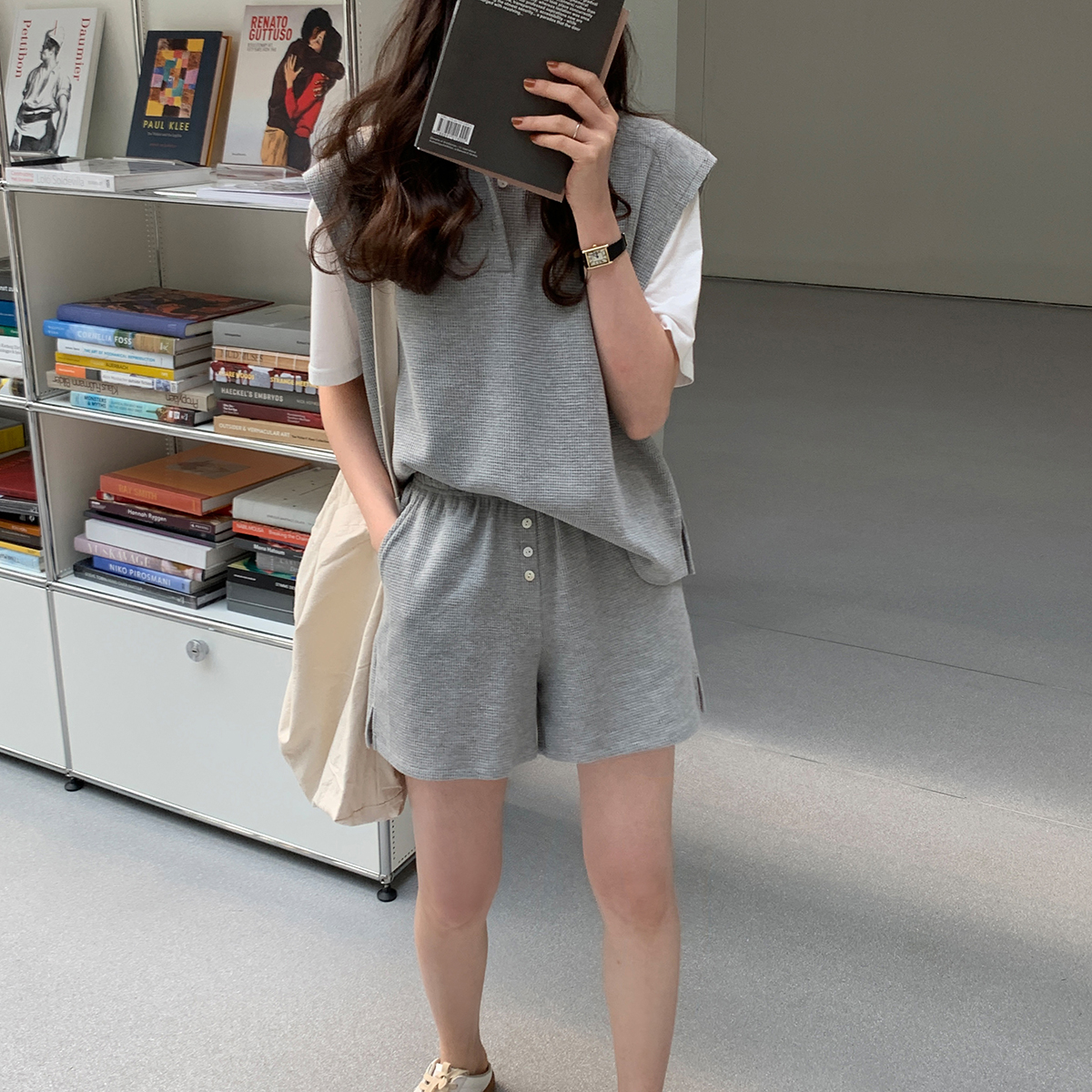 Floral grey blouses (spot) floral grey shorts (spot) Tibetan blouses (spot) hidden cyan shorts (spot) beige blouses (spot) beige shorts (spot) hit bottom white T (now