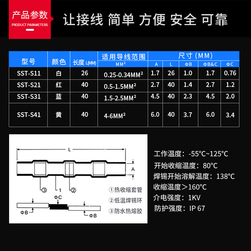 Waterproof pressure-free solder ring heat-shrinkable tube terminal wire connector shielding wire lamp middle connection protection butt joint