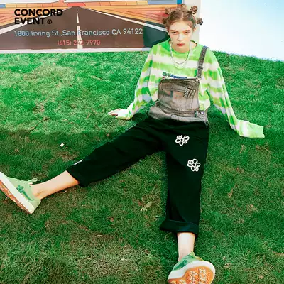 CONCORDEVENT tie dyed progressive ins jeans hip hop loose National Tide brand small daisy print baby bag pants