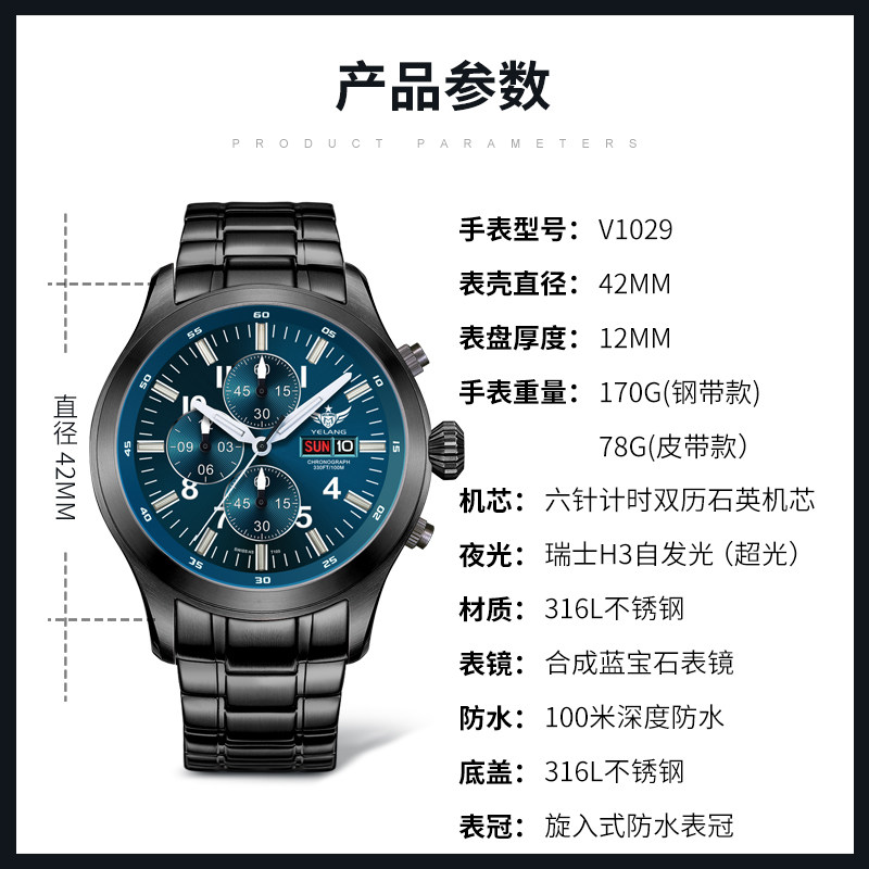 This black steel band-black face-green light full black steel band-black face-blue light natural steel band-grey face-yellow light ben black steel band-black face-blue light full black steel band-black face-green night light full black steel