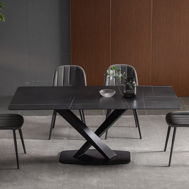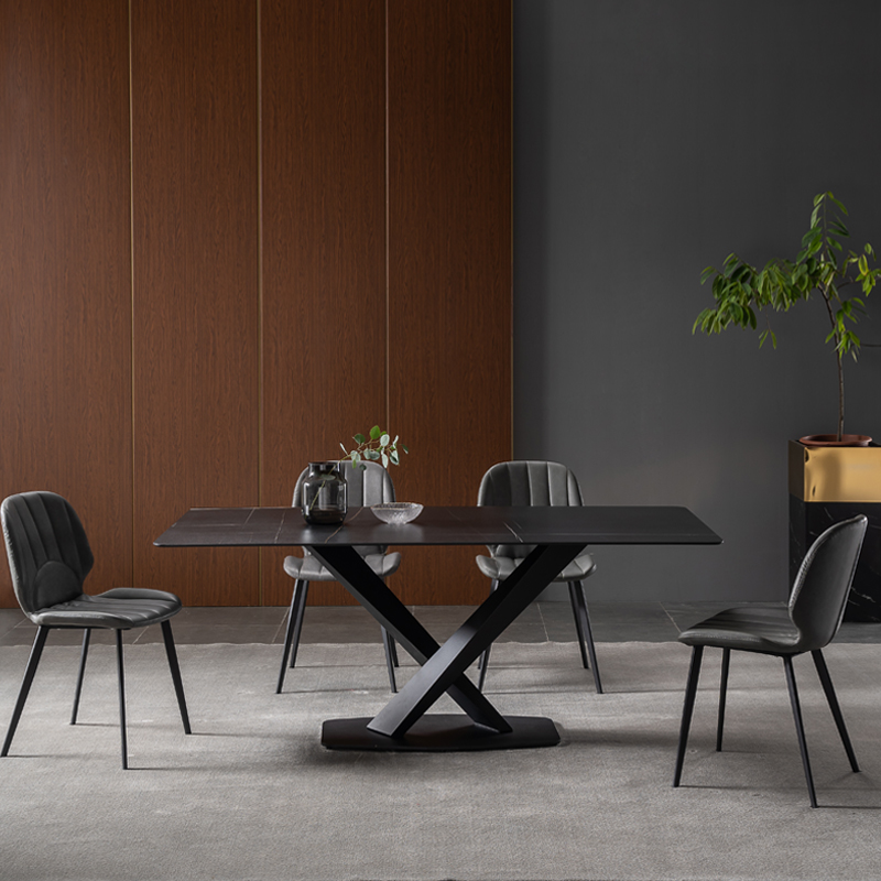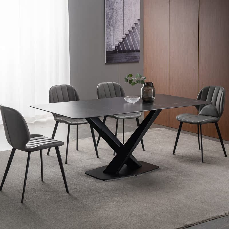 Italian minimalist slate dining table and chair combination home size apartment Nordic rectangular marble dining table