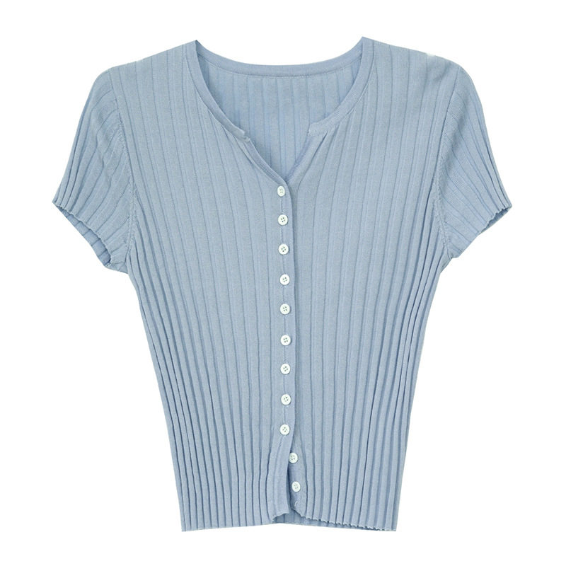 Solid color short-sleeved sweater women's Korean version of simple and versatile ice silk slim and versatile thin top FENING MAJE