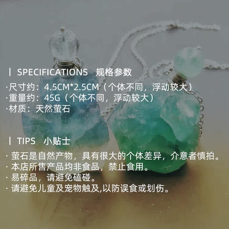 Fluorite essential oil bottle pendant necklace natural crystal can open the handling jewelry
