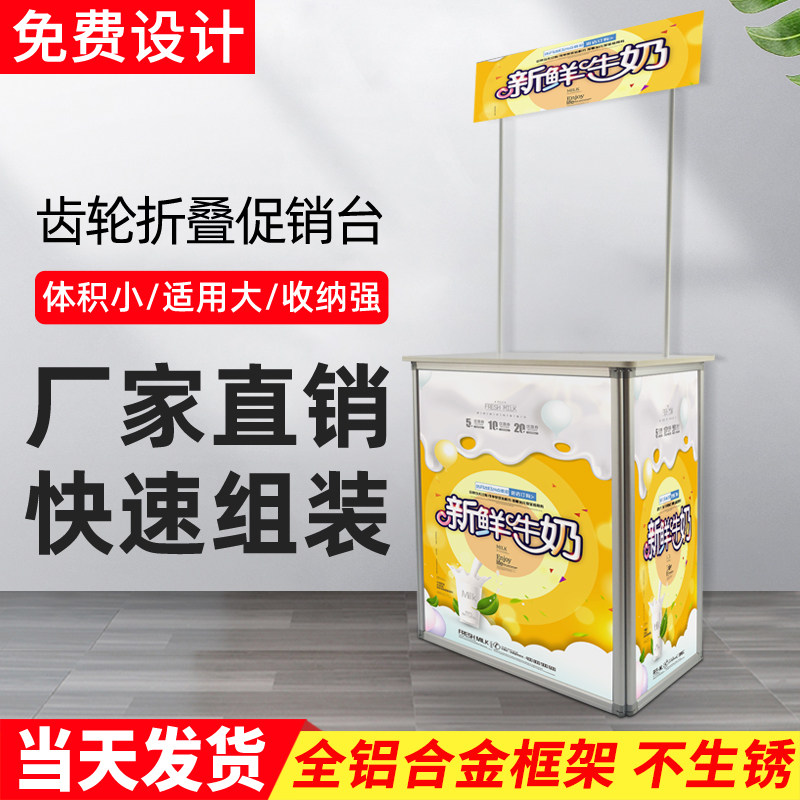 Supermarket event stall portable small promotional stand display stand folding mobile outdoor publicity universal wheeler push table