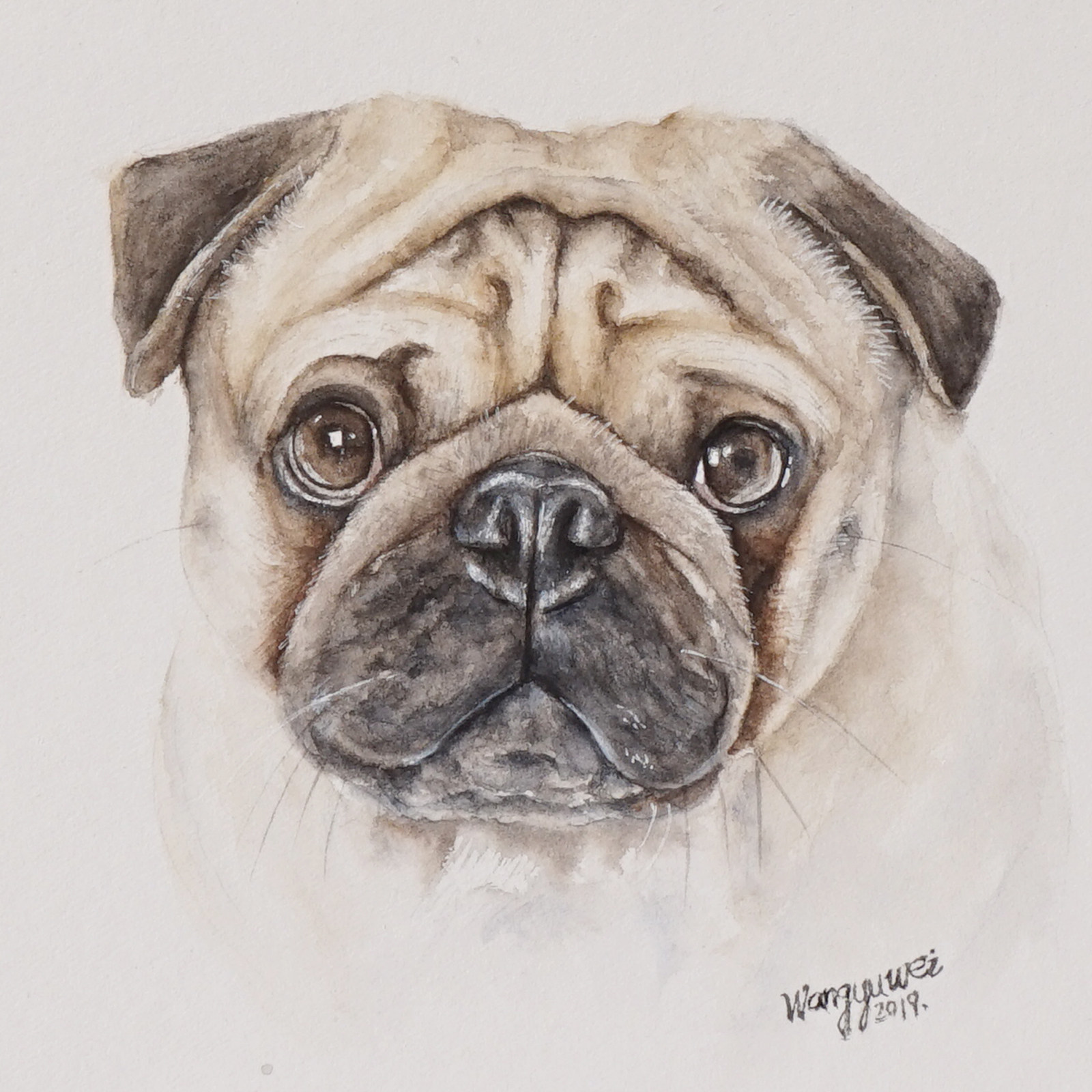 Wang Yuwei Watercolor Little Pine "Bago Dog" Decorative Living Room Bedroom Decoration Collection Paper watercolor
