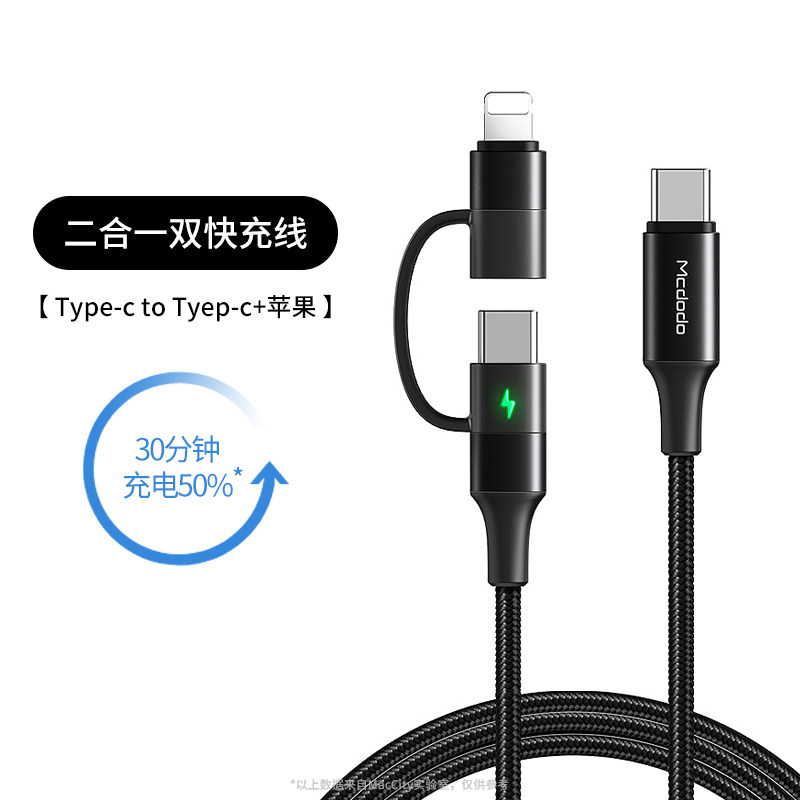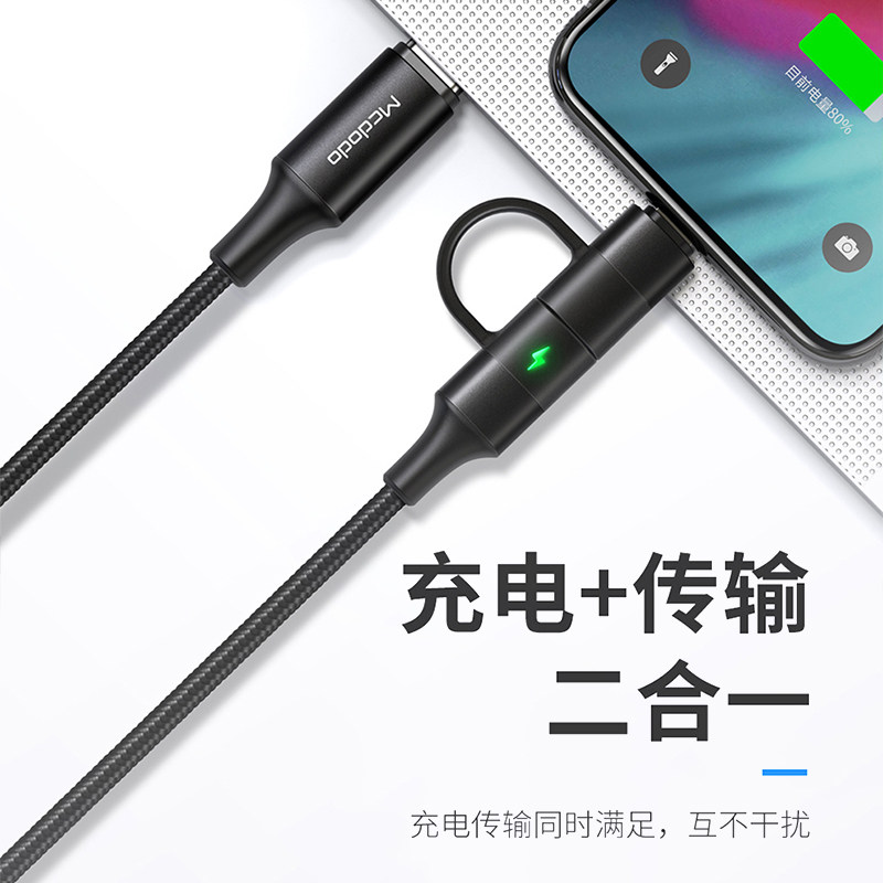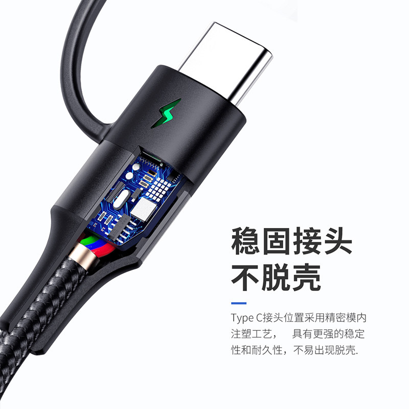 Applicable to Apple mobile phone charging line Android double type to lighting data line with three-in-one Apple 14pro fast charging wire flash charge plus coarse two-in-one