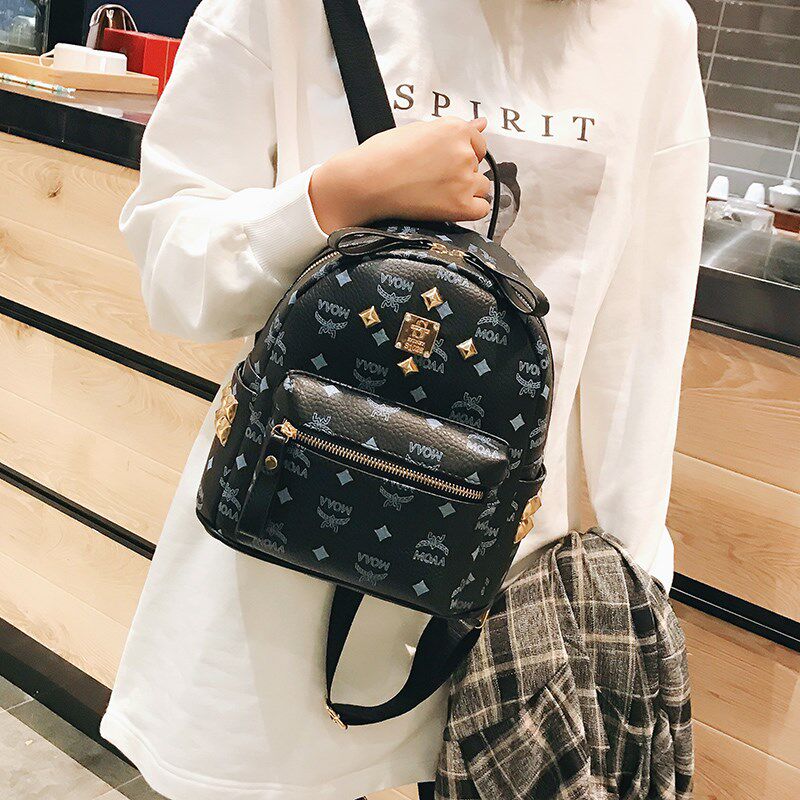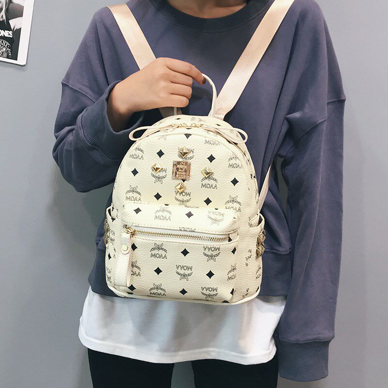 Rivet backpack Korean version of college style schoolbag 2021 new popular leather large-capacity leisure travel small backpack