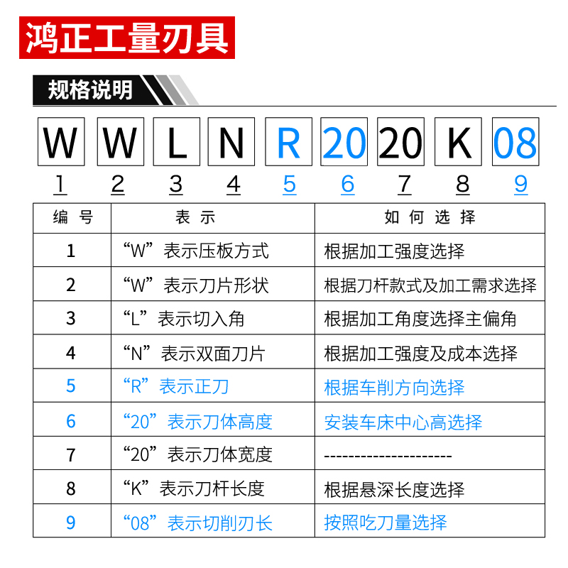 WWLNR1616K08 Front knife WWLNL1616K08 Reverse knife WWLNR2020K08 Front knife WWLNL2020K08 Reverse knife WWLN