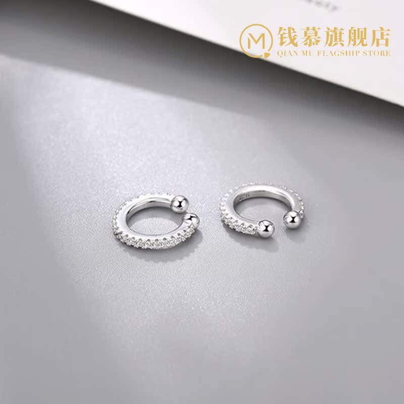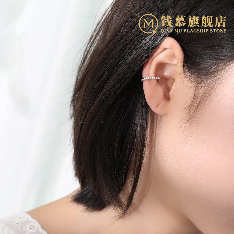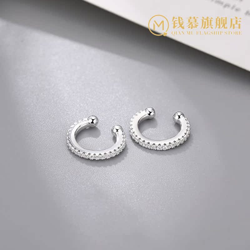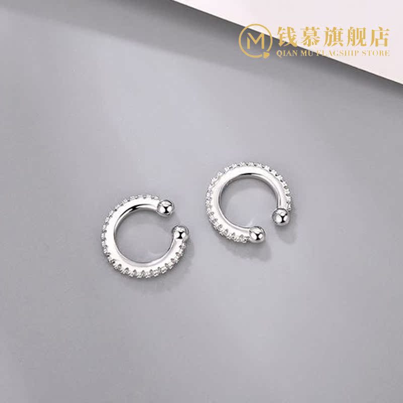 Qian Mu four-claw simulation diamond ear needle S925 sterling silver women's and men's simple single row of diamonds luxury atmosphere ear clip