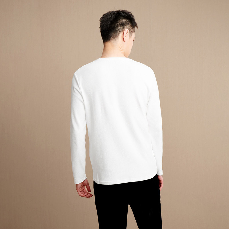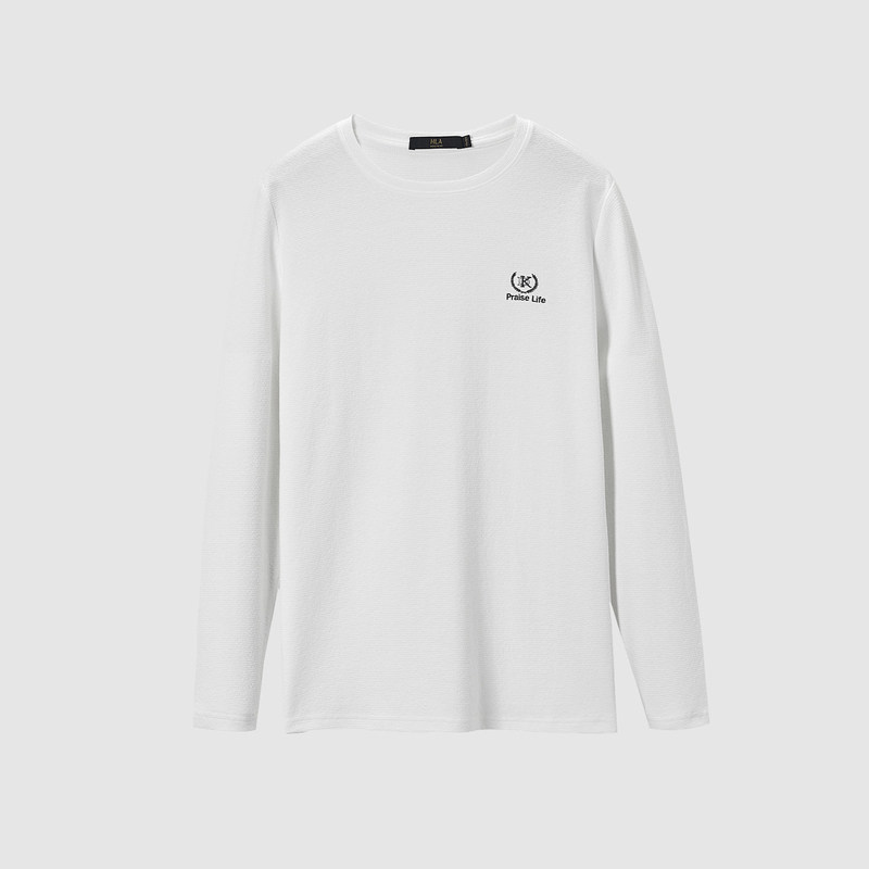 HLA Hailan House round collar classic creaty sense long sleeve T-shirt net color base generous man