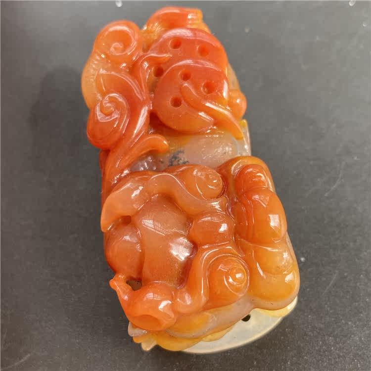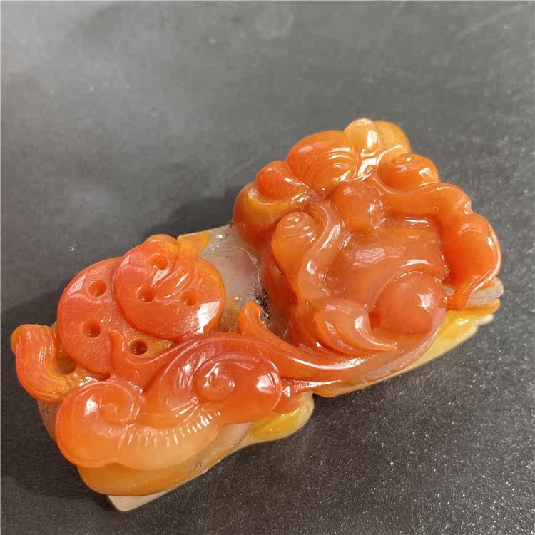 Yellow Dragon Jade Red Overlord Pixiu Eggplant Mountain Material Jade Good Luck Lucky Overlord Pixiu Men's and Women's Pendant