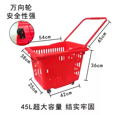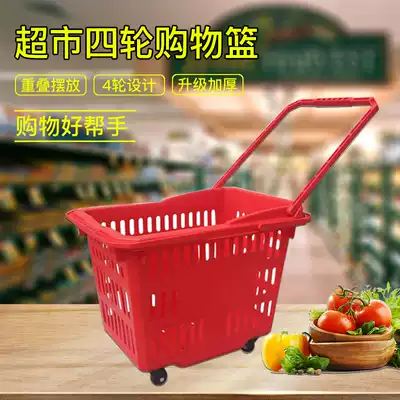 Supermarket shopping basket portable basket plastic thick tie rod pulley shopping frame shopping shopping basket shopping basket shopping shopping basket