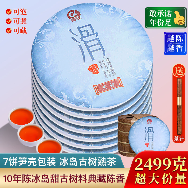 2010 Ancient tree sweet Icelandic court Pu'er tea cooked tea leaves Yunnan Seven Pizza Tea 7 Pieces of the whole purchase 2499g