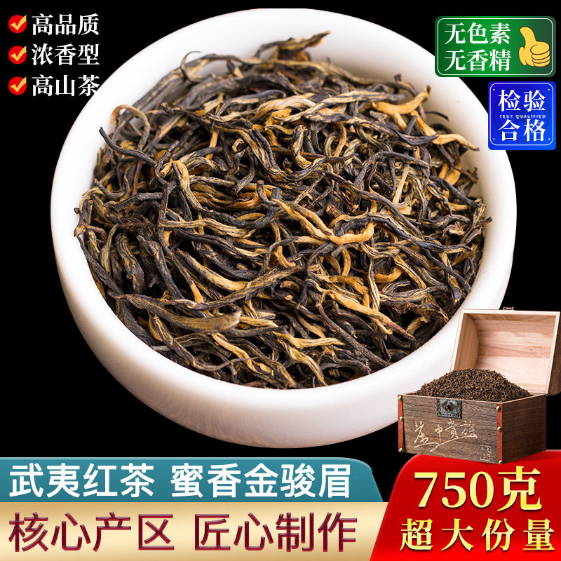 High quality Honey Fragrant Golden eyebrow black tea Zhengzong Intense Aroma Type Golden Handsome Brow 750g Bulk Tea Solid Wood Gift Box Dress