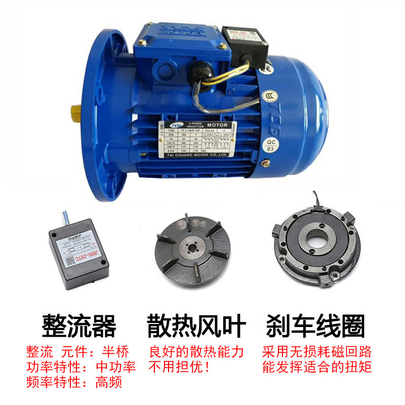 TCG Taichuang aluminum shell motor with brake 0 37 0 75 1 5 2 2 3KW three-phase vertical and horizontal brake motor
