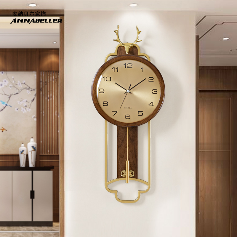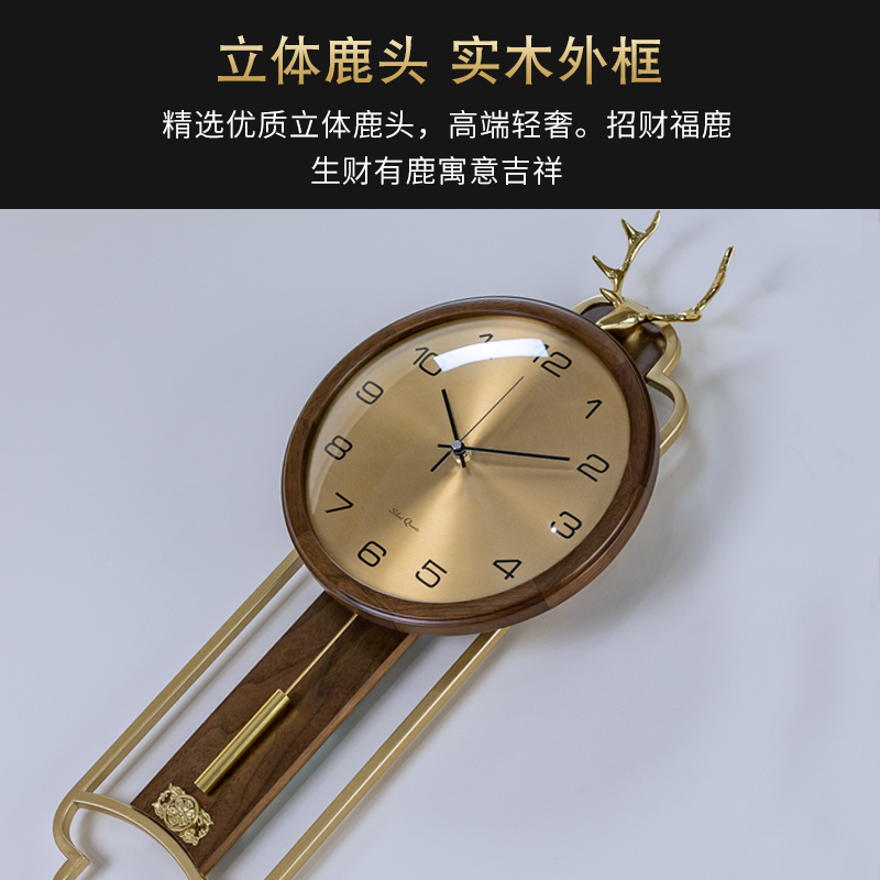 Solid wood light and luxurious deer head decoration hanging bell Chinese living room home fashion New Chinese style creative and watch dining hall quartz clock