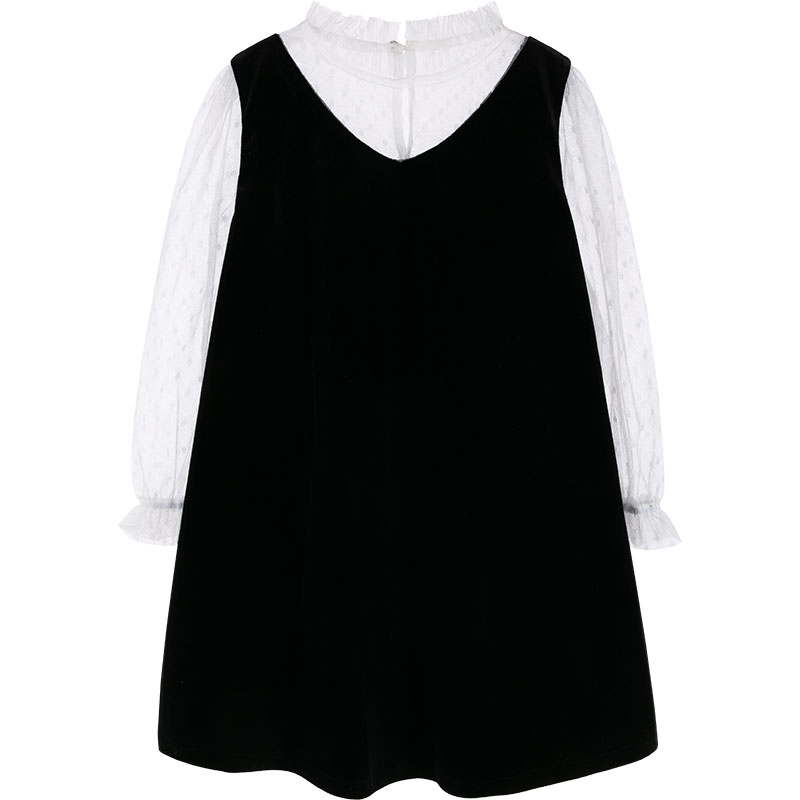 TouleJour girls' retro French romantic lace collar contrast color Hepburn elegant velvet dress