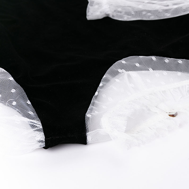 Velvet dress with black lace collar