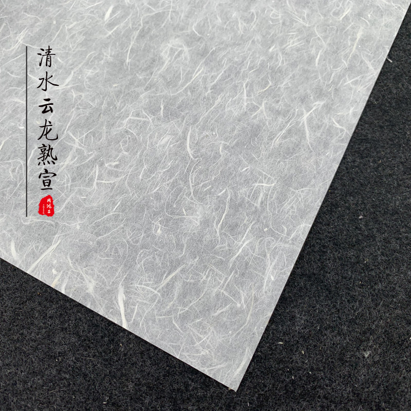 Zhou Hongchang leather paper handmade four or six feet structure leather paper clear water cloud dragon pattern cooked Xuan paper small regular script Chinese painting paper