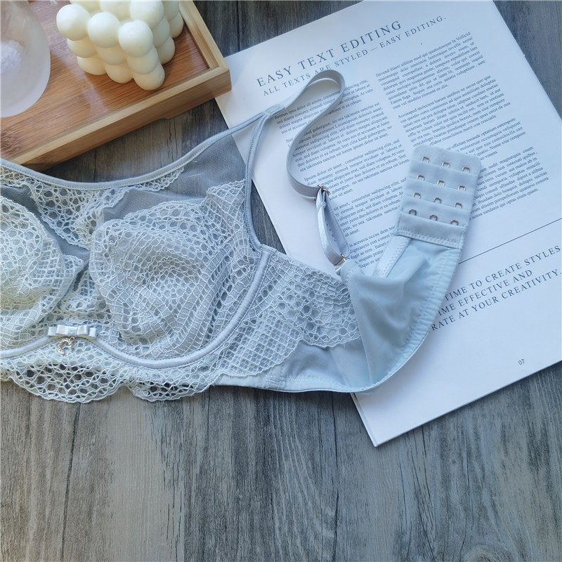 Eurostyle sexy big breasted lace water crystal cup lingerie soft steel ring to woo super thin bra