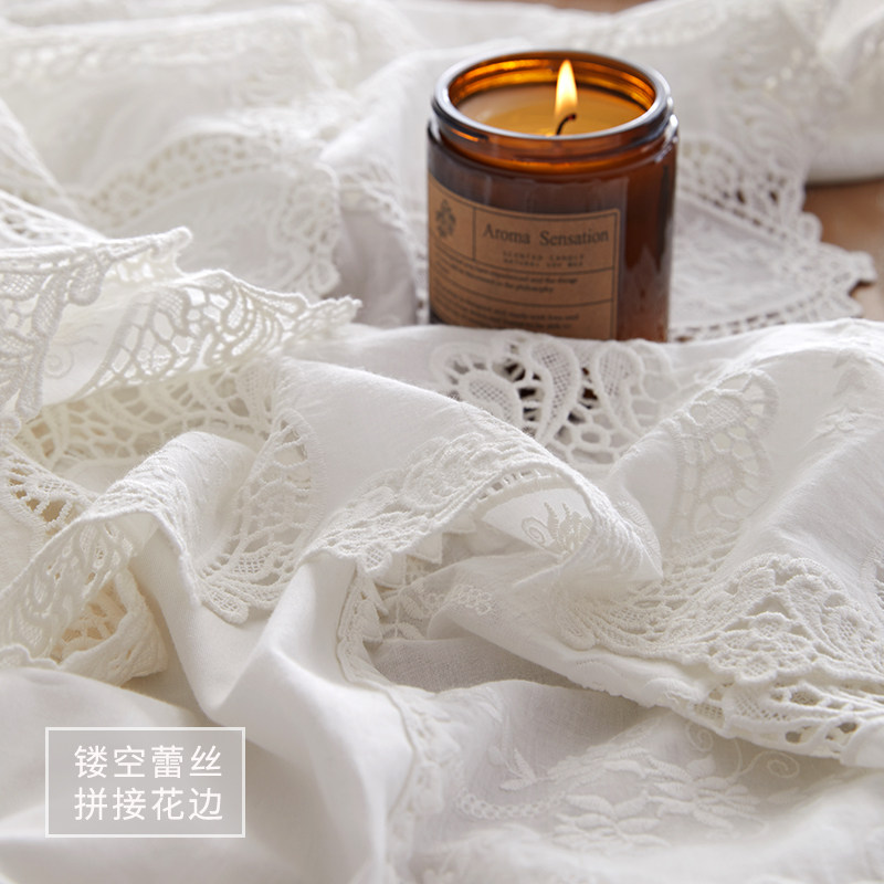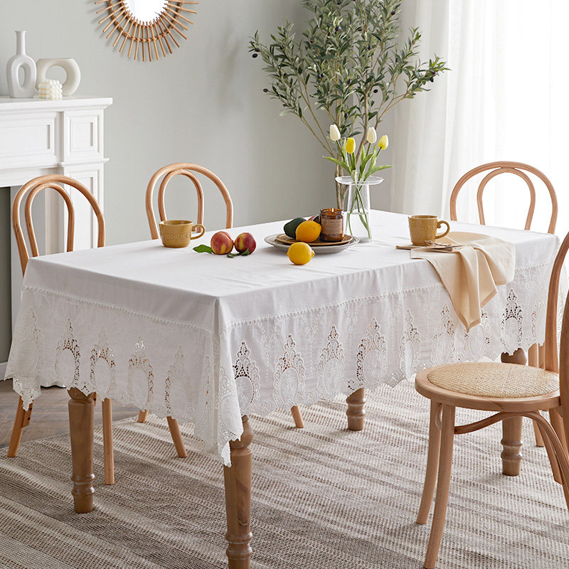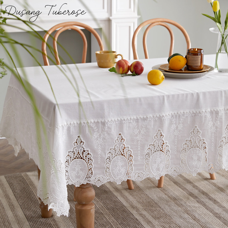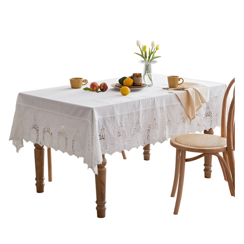 The French style frescoed hollow lace pure color table cloth Eurostyle small lavish white rectangular tea table cloth art for home