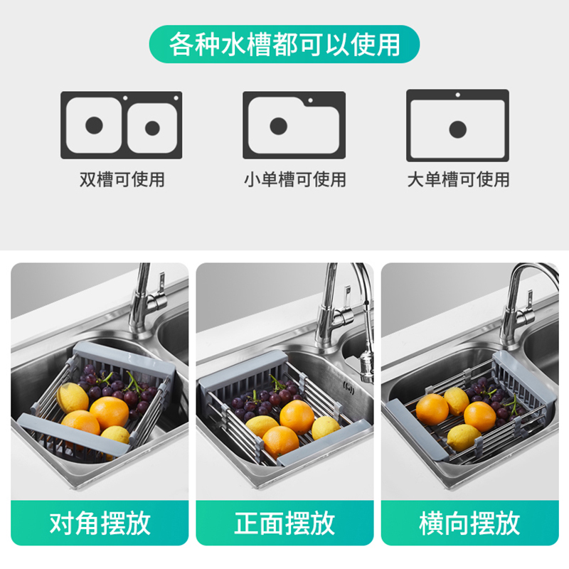 Kitchen Sink Drain basket Retractable Drain rack Stainless Steel Pool Wash Vegetable Basin Pool Cutlery Filter Dry Water Basket