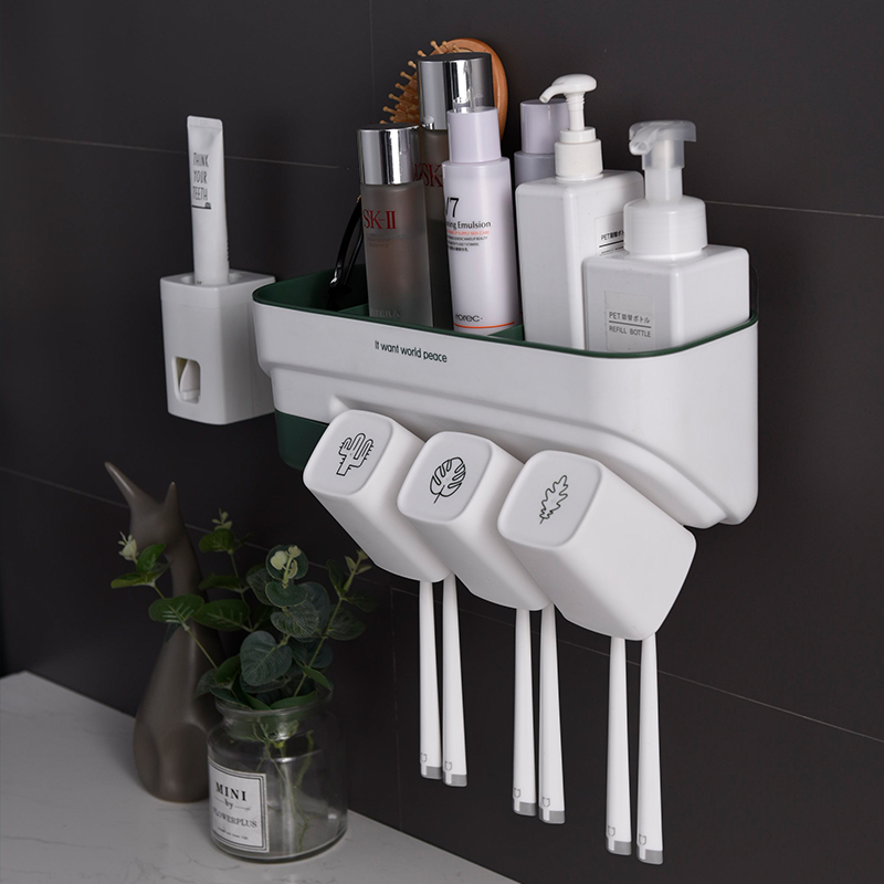 Toothbrush shelf toilet electric toothbrush cup mouthwash cup free punch suction wall hanging jar dental set