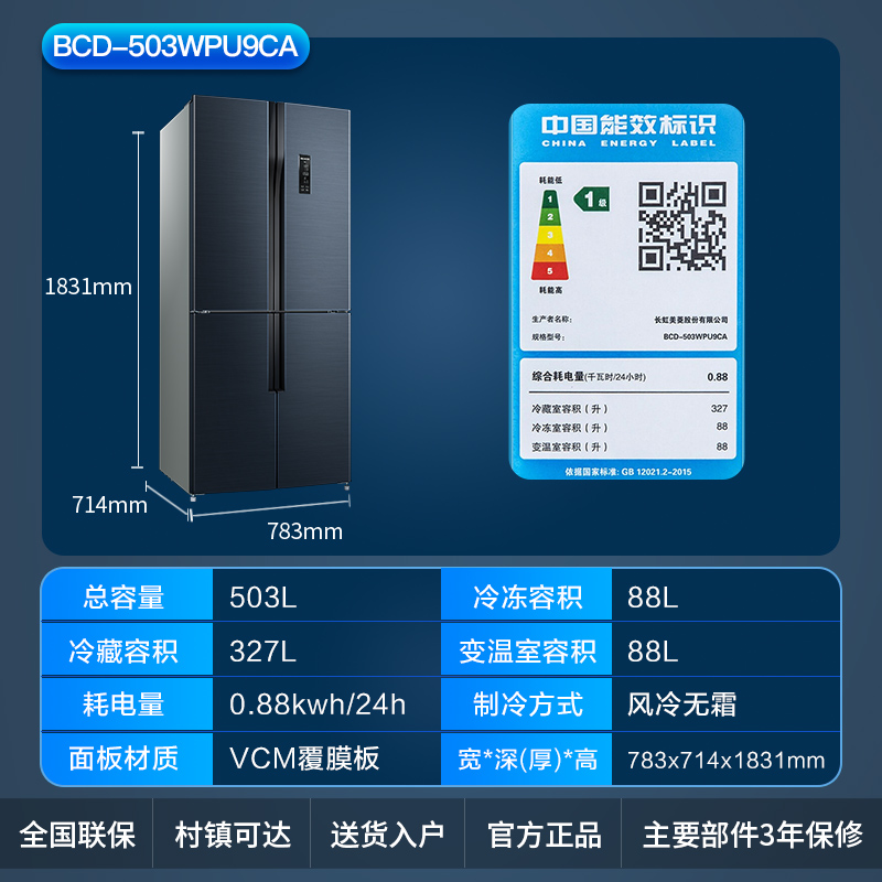MEILING MEARING BCD-503WPU9CA CROSS FOUR DOORS DOUBLE SWITCH DOUBLE DOOR REFRIGERATOR FREQUENCY CONVERSION M FRESH RAW