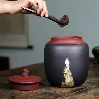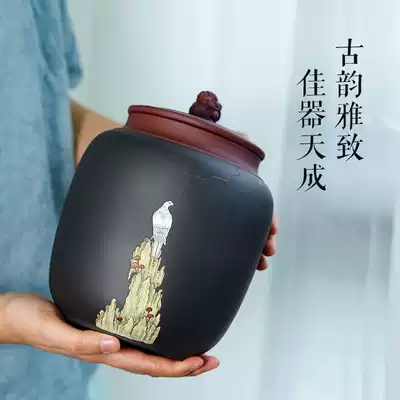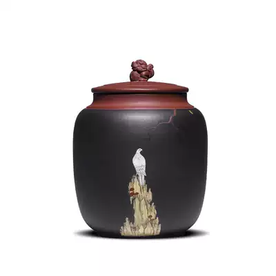 Daxian Hongtu Yixing purple sand tea jar manual mud painting home storage Pu'er waking tea can loose tea about one catty