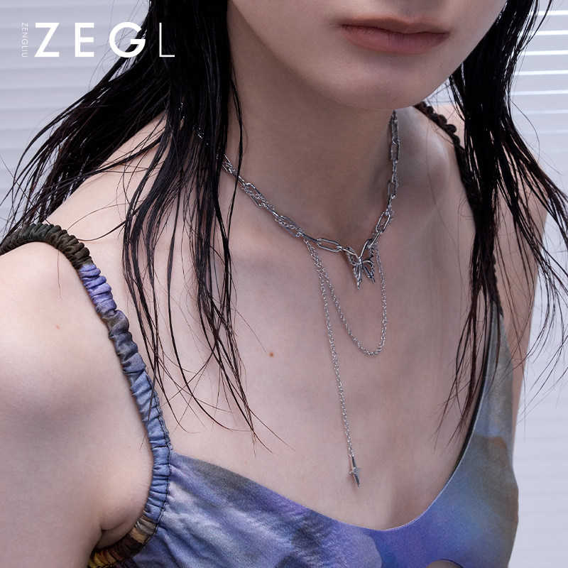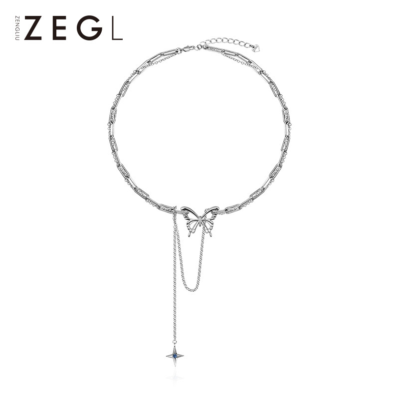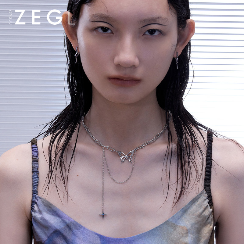 Zegl small design sense butterfly necklace women summer light luxury INS cold wind collarbone chain in 2021 new accessories