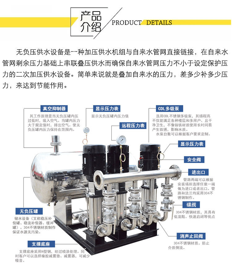 No negative pressure water supply equipment stainless steel multi-grade pump check valve butterfly valve customised contact customer service