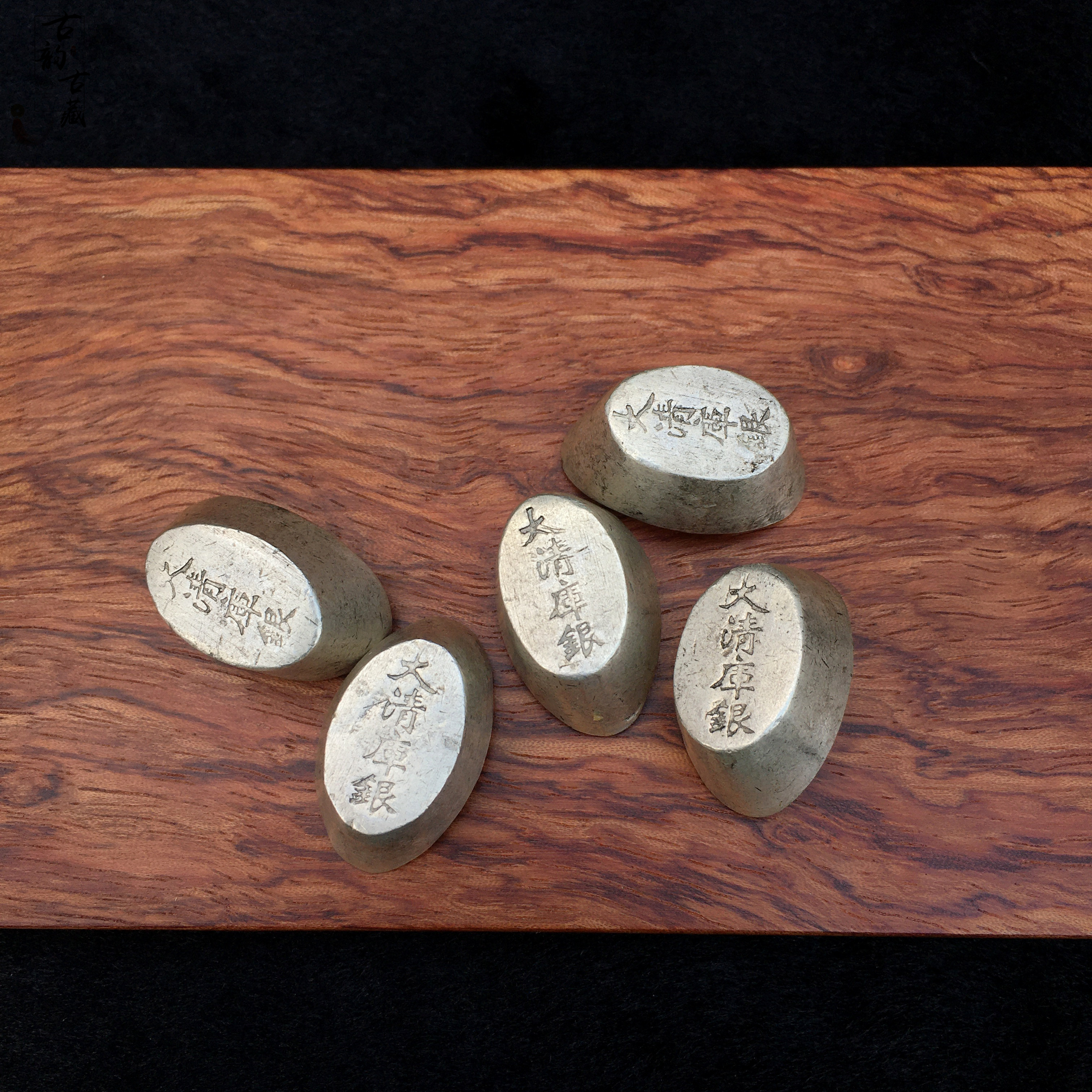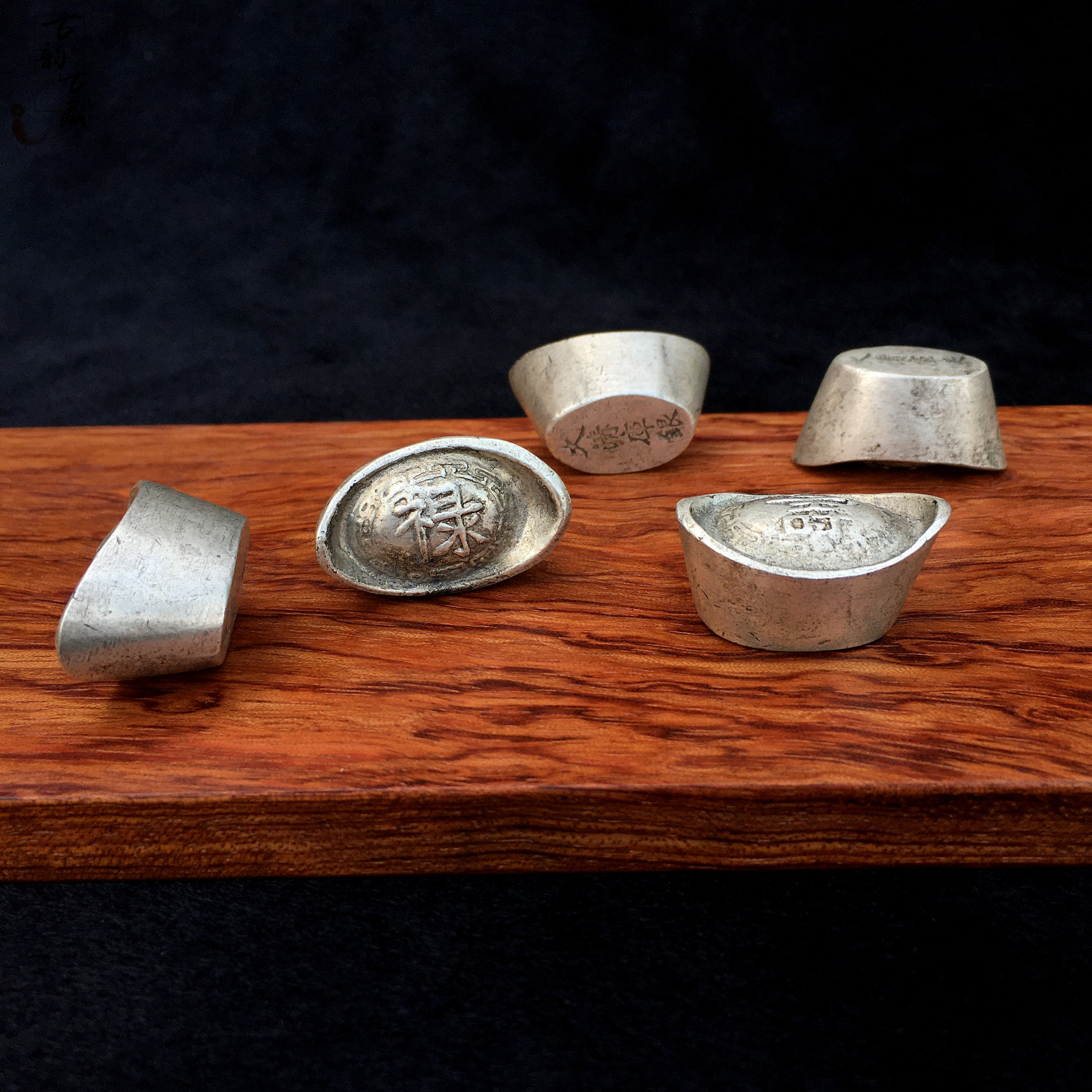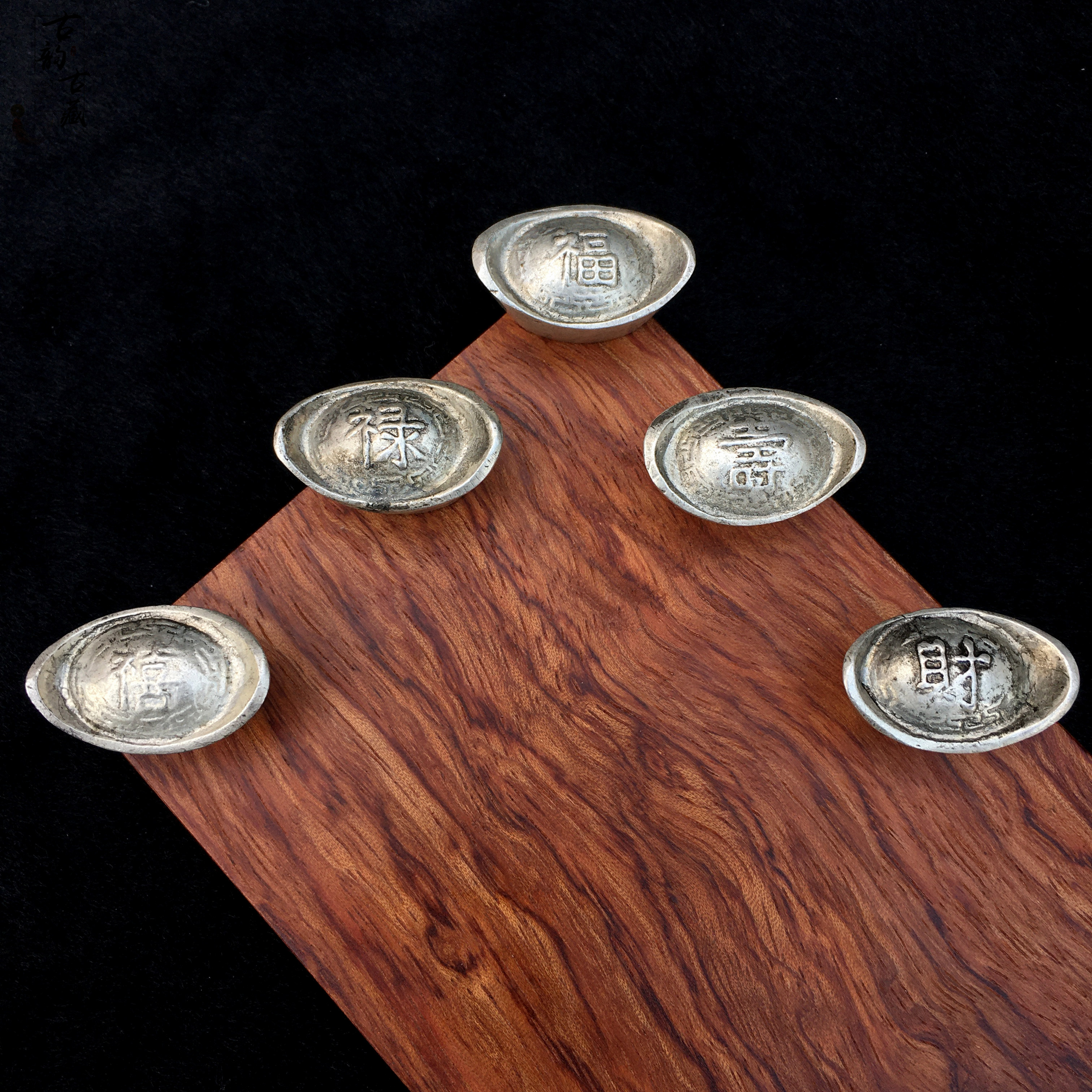 Antique ancient copper ingot collection Fu Lu Shou Xi Cai silver ingot set of five antique Daqing library silver props ornaments