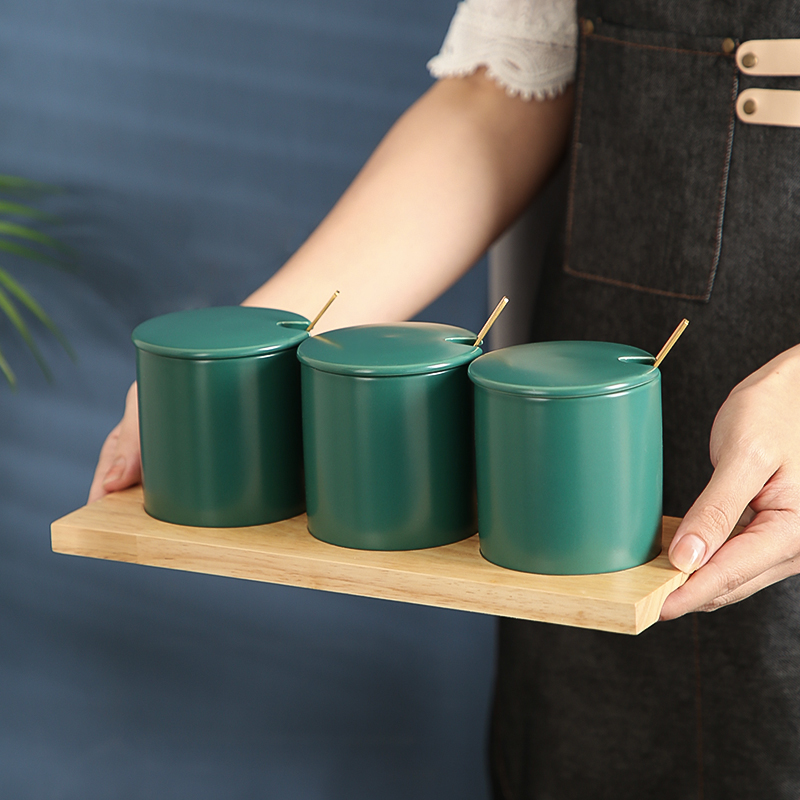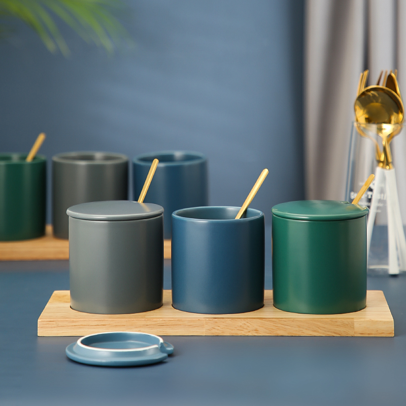 Kitchen Seasoning Box Ceramic Home Seasoning Jar Suit Creative seasoning jar Damp Salt Jar Combined seasoning cartridge lid