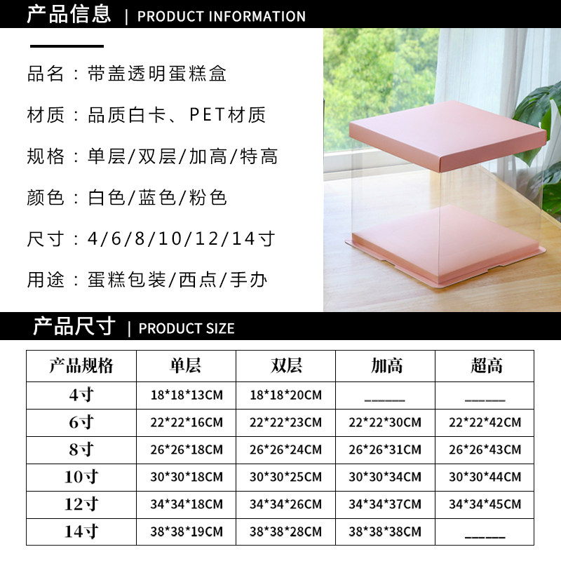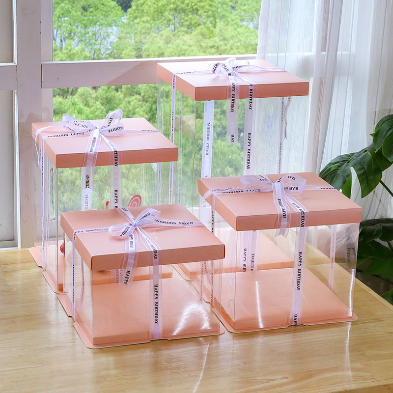 Transparent Birthday Cake Box box 4 inch 6 inch 8 inch 10 inch 12 inch Single double layer plus high net red cake box
