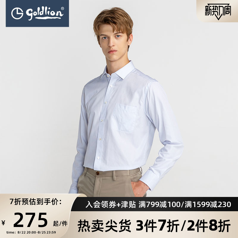 (Including mulberry silk) Jinlilai men's premium long-staple cotton check jacquard business formal wear long-sleeved shirt