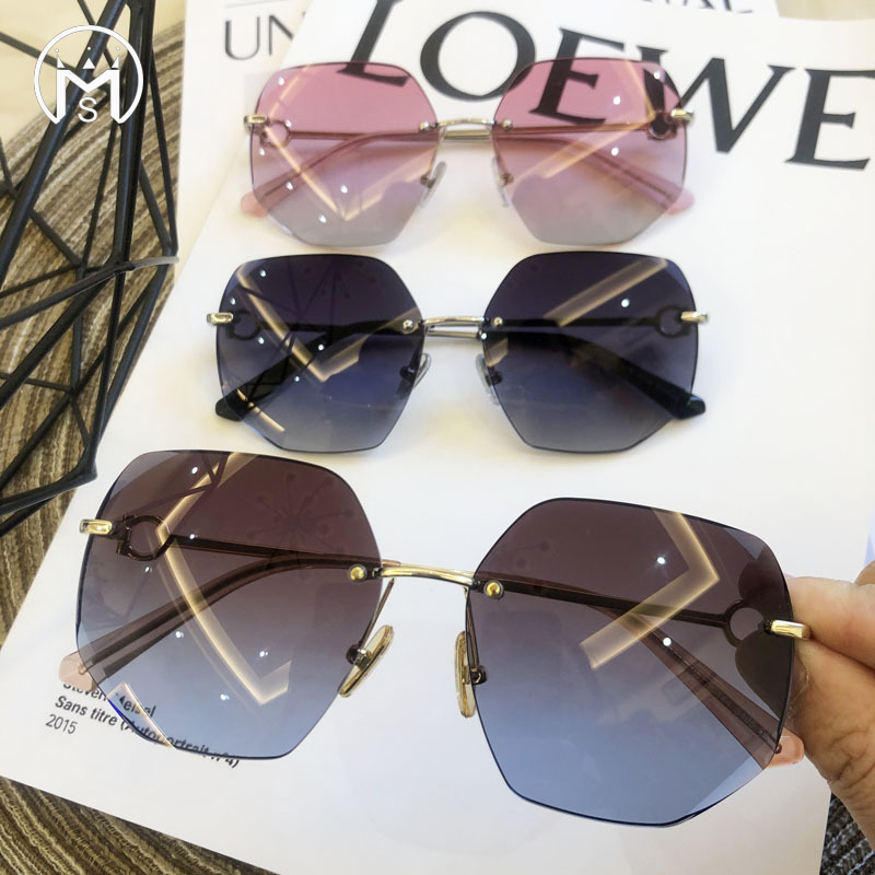 Mo Su new high-end women's trimming frameless polarized sunglasses large frame face repair sunglasses driving glasses