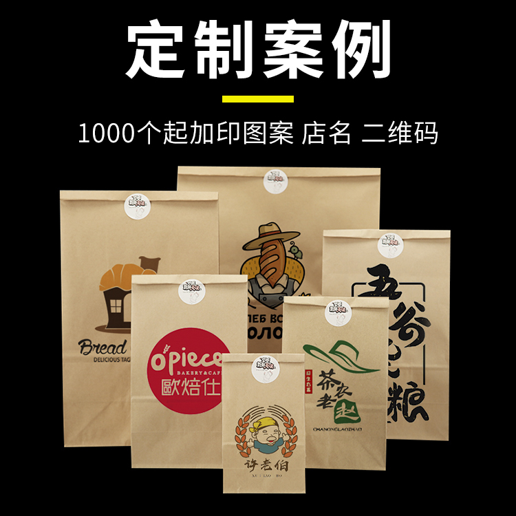 Kraft paper bag food packaging bag Disposable anti-oil baking toast bread takeaway snack packaging bag customization