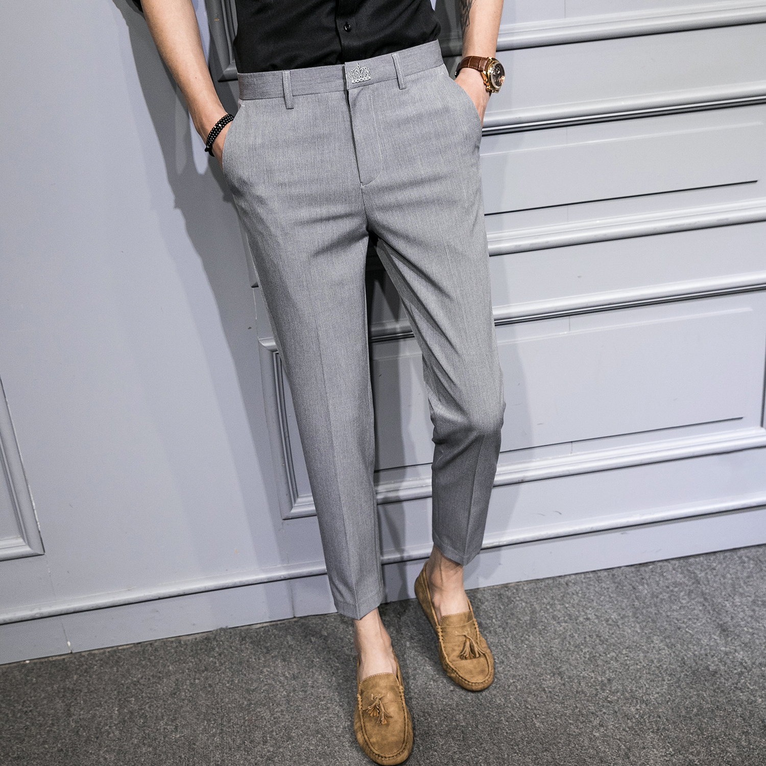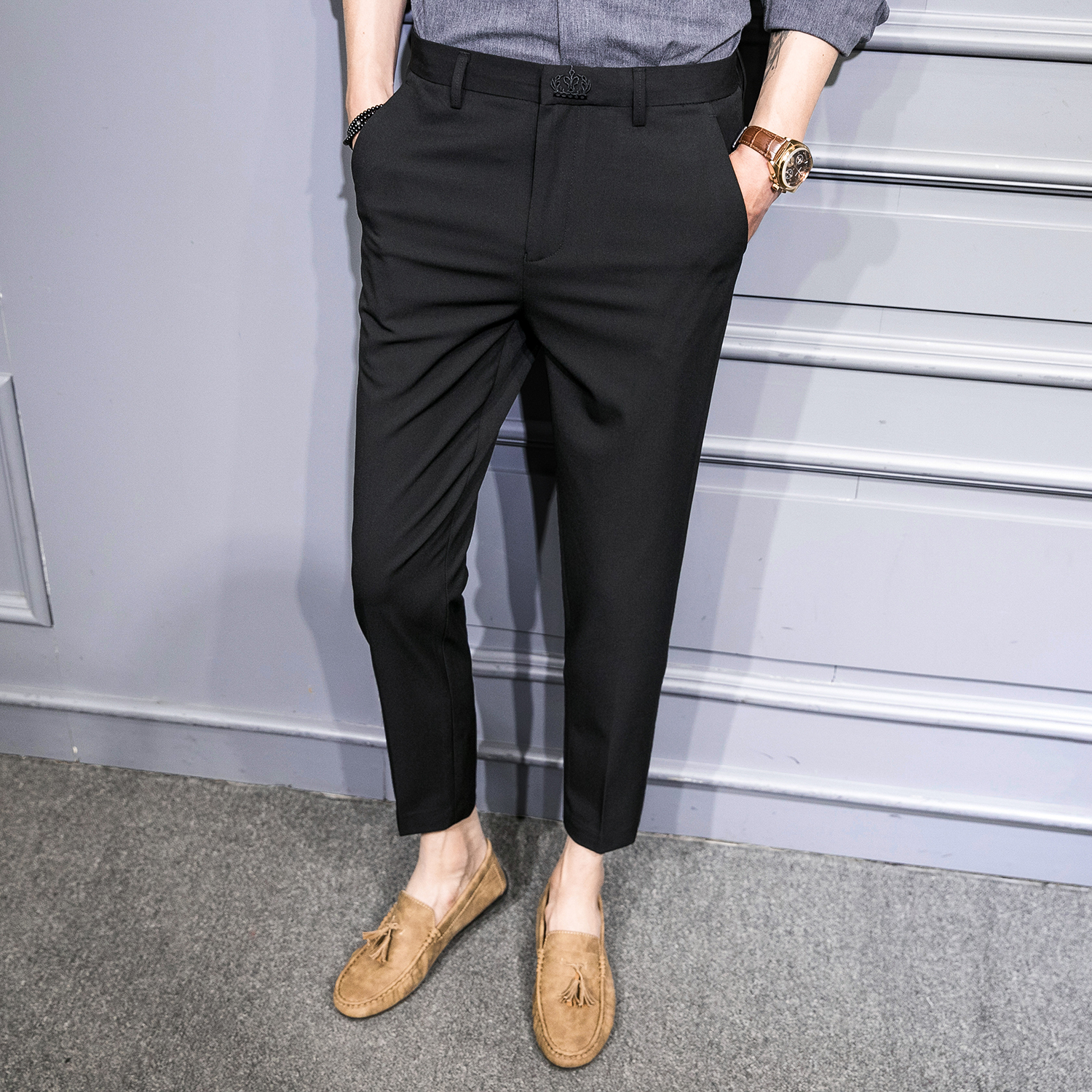 Leisure pants in autumn men's wear trend of hundred and Korean version of business nine pants for the savant large-scale small foot pants men