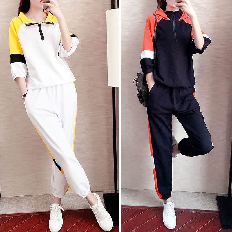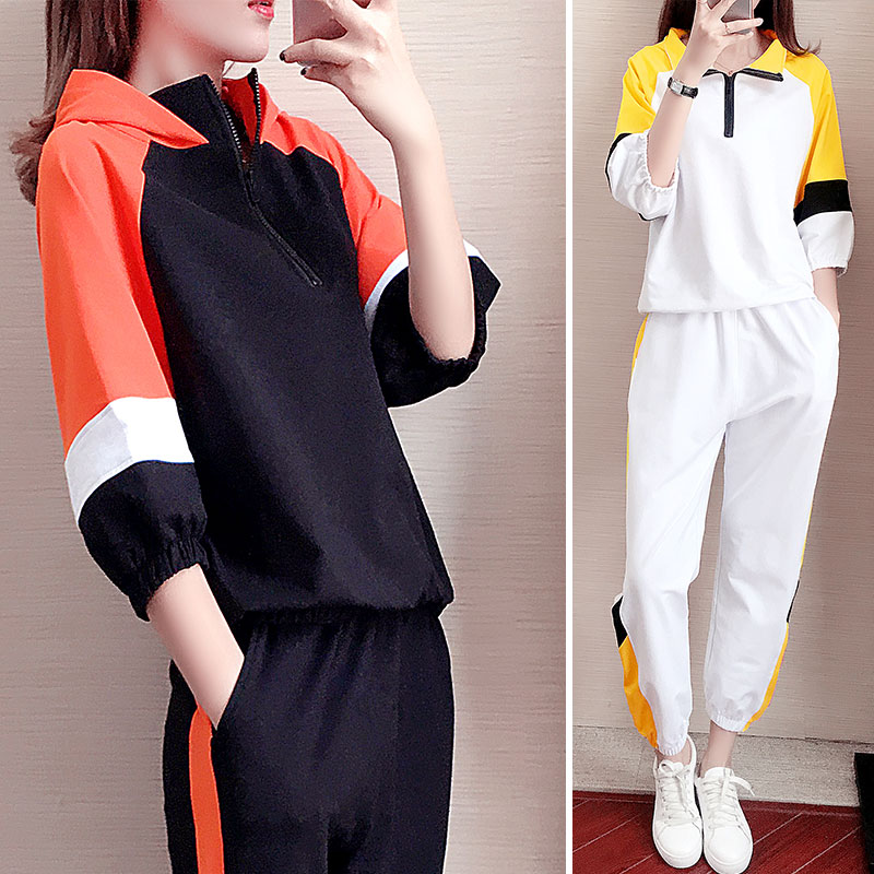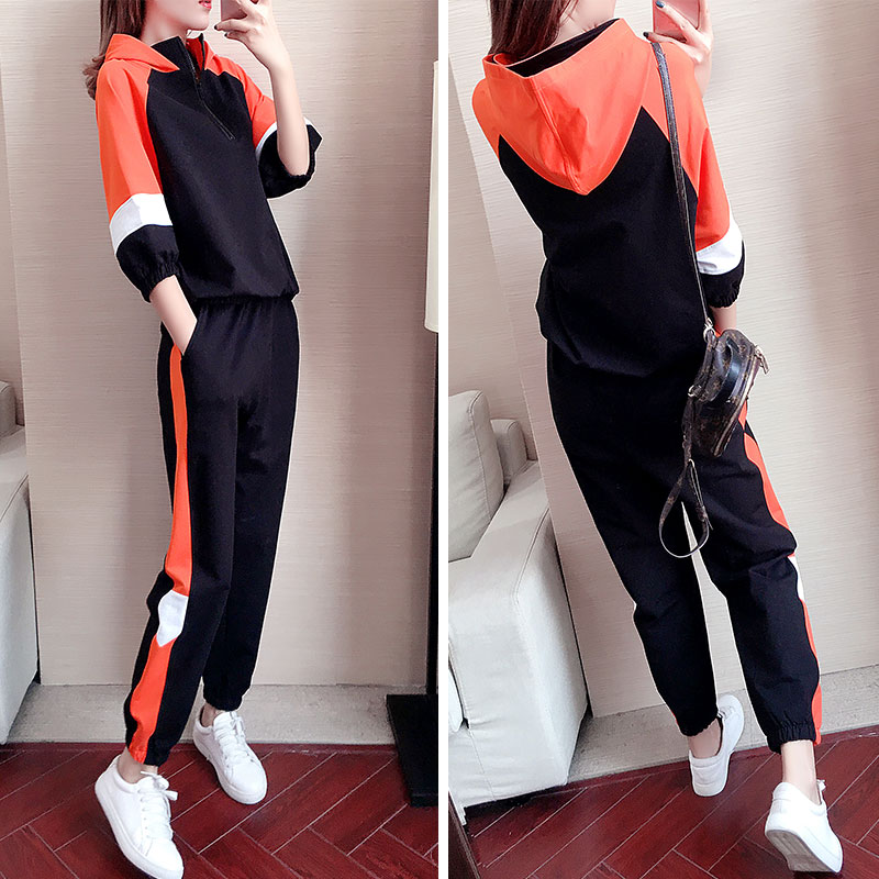 Port Taste Foreign Pie Sports Suit Women 2022 Spring Autumn Tide Casual Fashion 70% Sleeve Sweatshirt With Cap Two Sets Loose