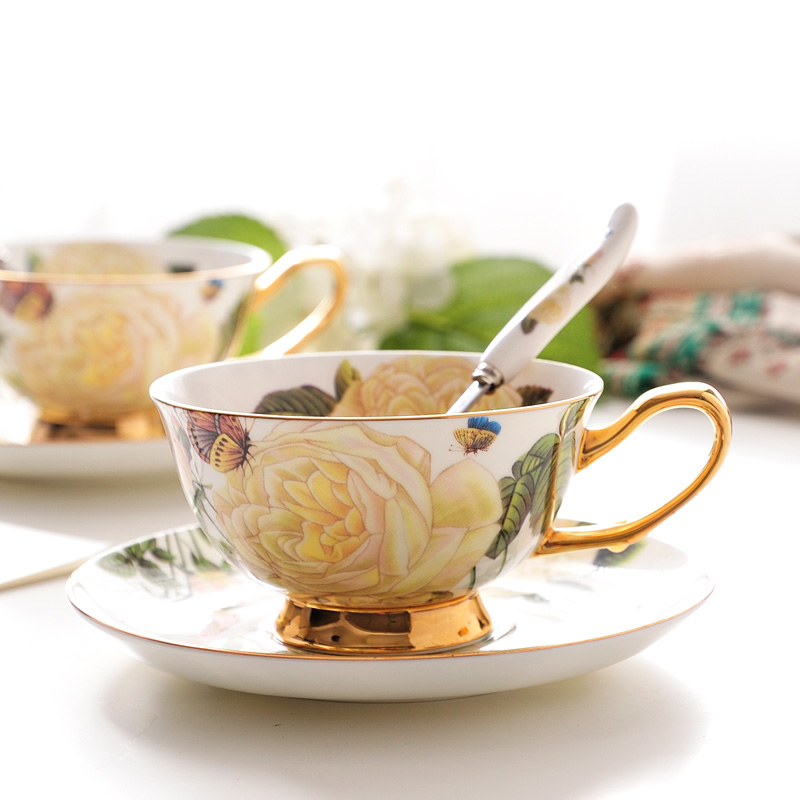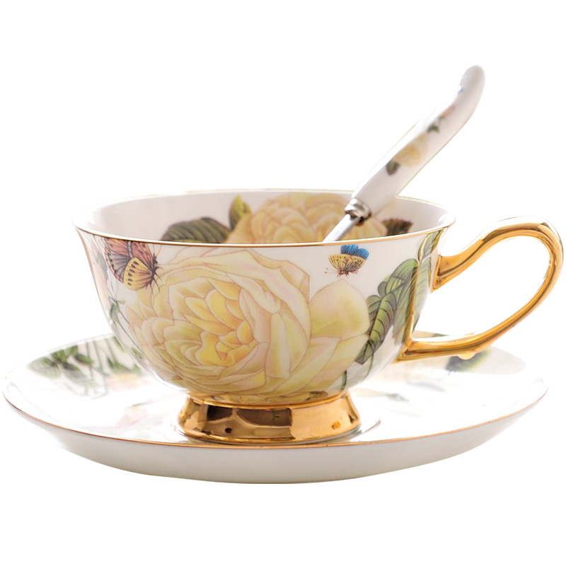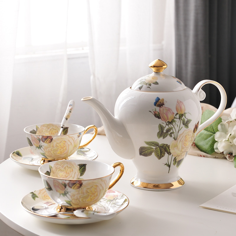 White Rose European-style bone porcelain flower tea cup afternoon tea set English style ceramic sketch Phnom Penh small lavish coffee cup disc suit-Taobao