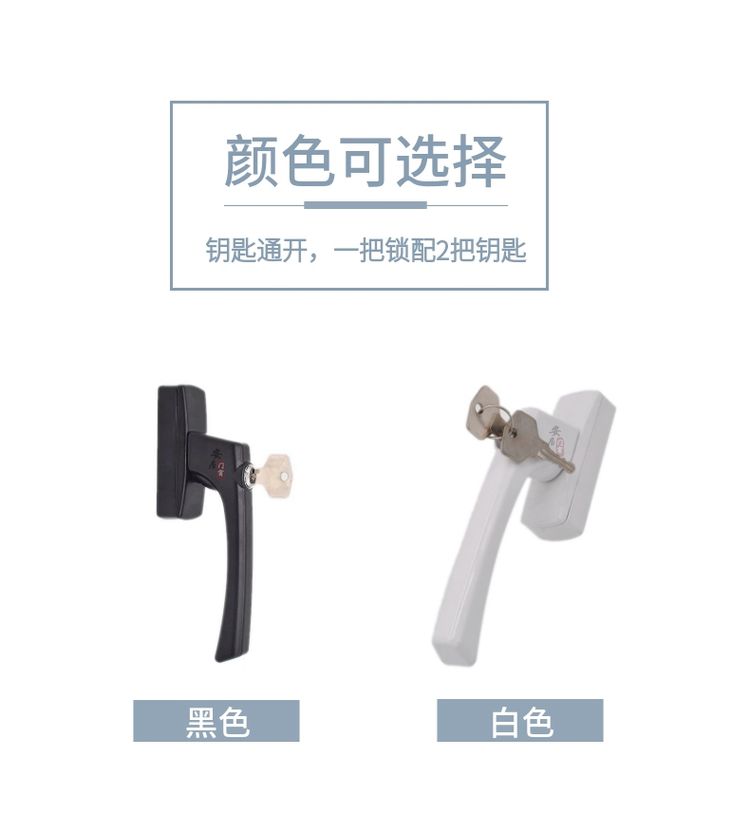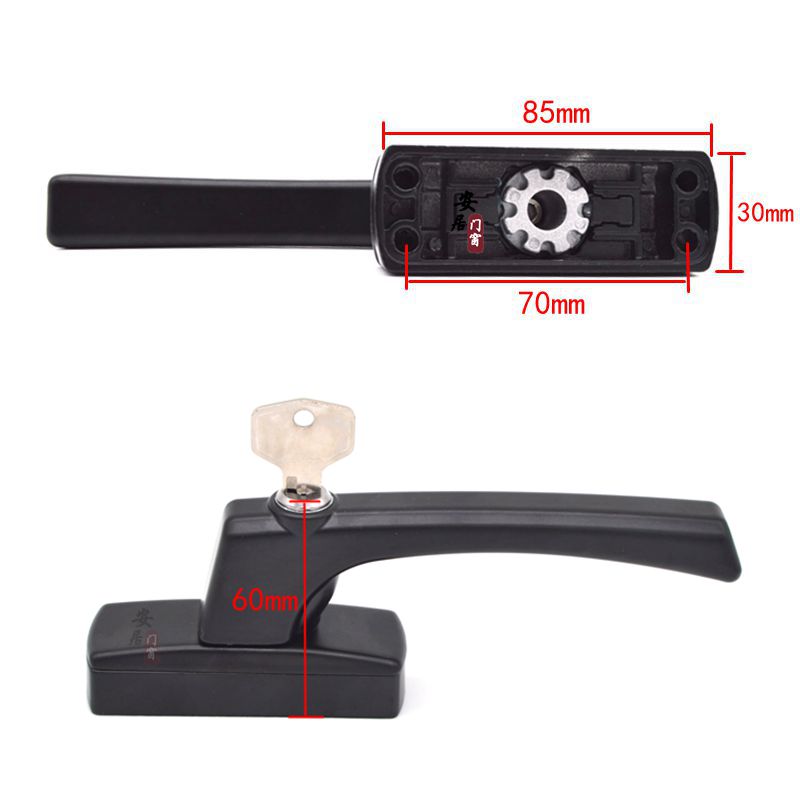 Aluminum alloy window handle with key lock broken bridge aluminum inside and outside level window child safety lock balcony door lock 70 holes